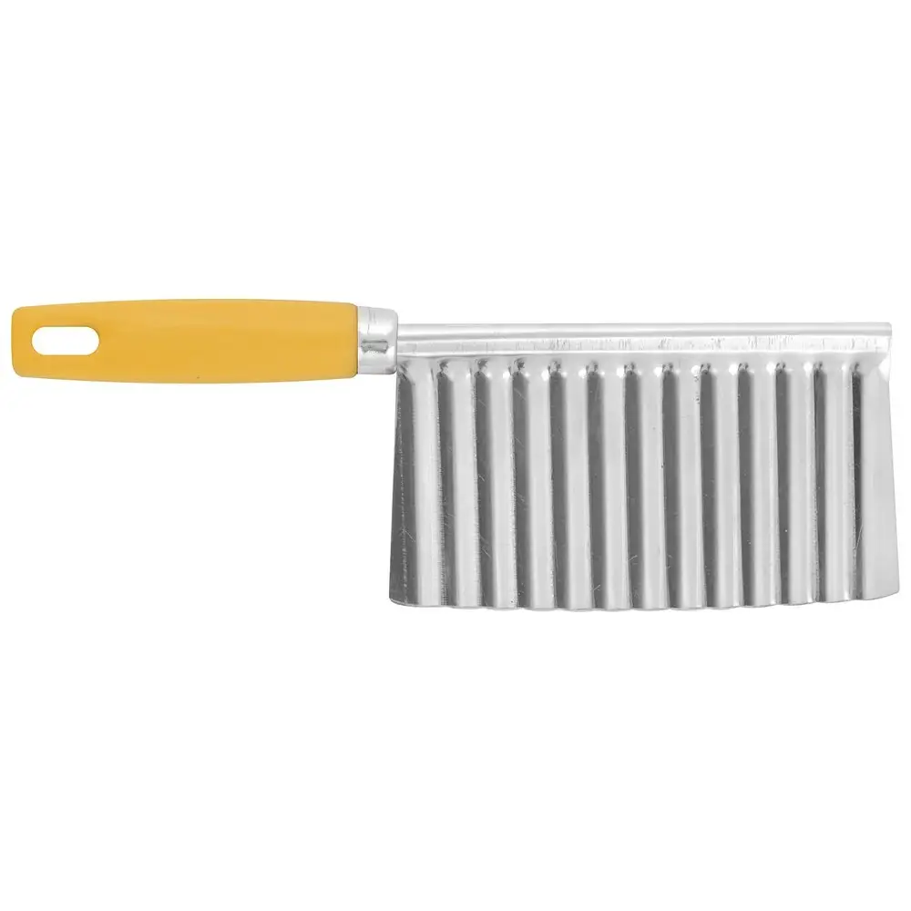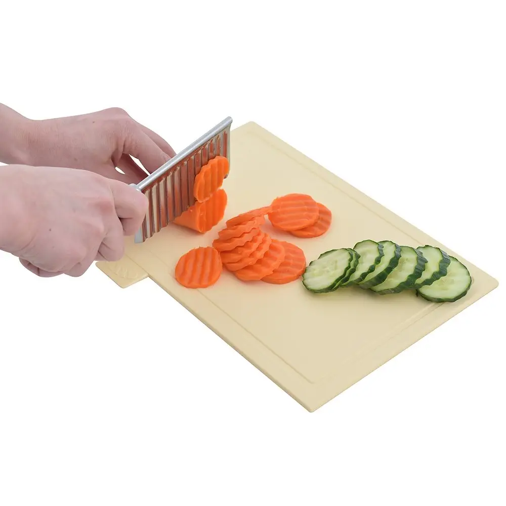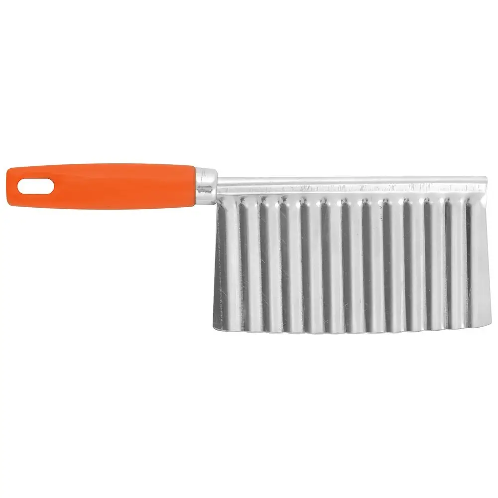 Используйте нож для волнистой нарезки и украшайте ваши блюда ломтиками овощей, фруктов и сыра. Слайсер для овощей и фруктов «Волна» — настоящая находка для тех, кто любит удивлять оригинально оформленными угощениями. Нарежьте картофель волнами и зажарьте во фритюре или сделайте красивую нарезку из огурцов или редиса. Волнистые кусочки будут отлично смотреться в горячих блюдах, на бутербродах или в оформлении холодных закусок. Инструмент используется как обычный нож, просто держите его за ручку и разрезайте продукты. Лезвие изготовлено из коррозионностойкой стали, ручка выполнена из пластмассы (полипропилен). Помыть резак можно проточной водой с использованием моющих средств.