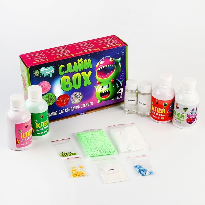 Слайм BOX 4 клея, набор по созданию слайма