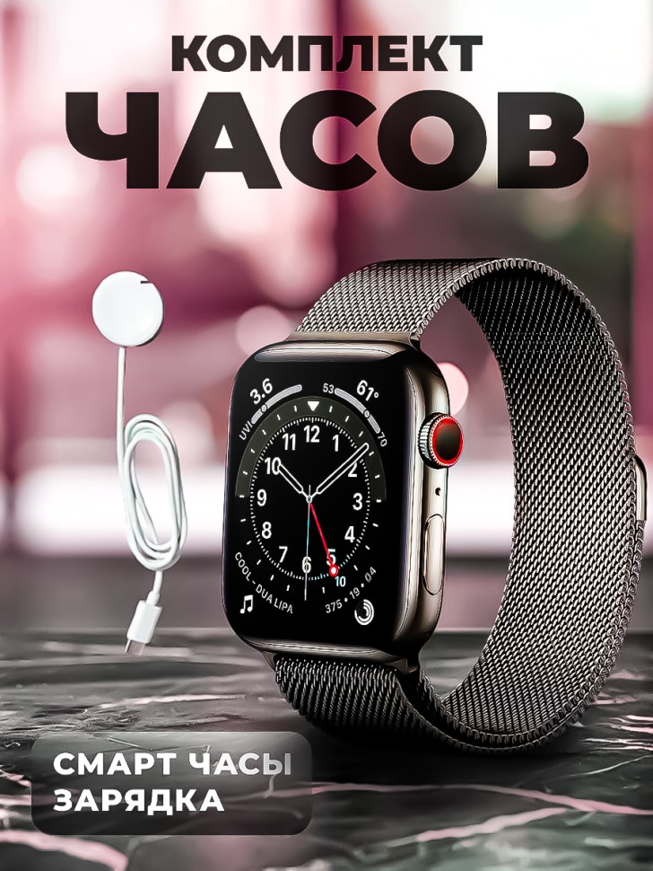 Смарт часы Smart Watch X8 PRO - это инновационный гаджет, который объединяет в себе функции умных часов и фитнес браслета. Они станут незаменимым аксессуаром для владельцев устройств на базе Android (андроид) и iOS (iphone). Взаимодействие с телефоном происходит через специальное приложение Wearfit Pro посредством bluetooth (блютуз) версии 5.0 и выше. Одной из ключевых особенностей смарт-часов является яркий безрамочный дисплей диагональю 45 мм, обеспечивающий насыщенные цвета и четкость изображения. Сенсорный экран имеет прочное акриловое стекло, что делает его надежным и долговечным. Смарт часы 8 серии предлагают множество функций для различных сфер жизни: от спорта и фитнеса до туризма и походов. С их помощью можно отслеживать количество пройденных шагов или расстояние, потребление калорий, измерять пульс и артериальное давление, проверять уровень кислорода в крови и даже анализировать качество сна. Они имеют оптимальный размер, стильно смотрятся на руке и подходят как для взрослых, так для детей и подростков. Мощная батарея высокой емкости позволяет активно использовать часы до 3-х дней. Для безопасной зарядки рекомендуется применение адаптера питания не более 2А, который покупается отдельно. Комплект поставки включает в себя беспроводную магнитную зарядку, три ремешка: 2 металлических типа миланская петля - для придания делового стиля, и силиконовый - для повседневного использования. Все это аккуратно упаковано в компактную коробку с ярким дизайном. Ручные цифровые часы имеют степень защиты IP67, которая уберегает от пыли и водных брызг. Но их нельзя использовать для глубоких погружений и длительного замачивания в воде, а также подвергать воздействию горячей воды и пара. Smart часы - это отличный подарок как для парня или девушки, так для ребенка и школьника.