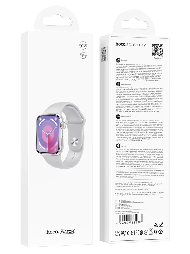 Смарт-часы Hoco Y23 Watch имеют возможность подключения к приложению к региону Китай, что обеспечивает доступ к голосовым оповещениям на китайском и английском языках.