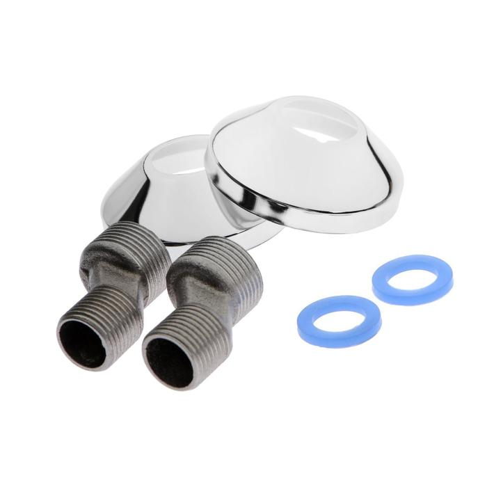 Комплект пристенного крепления включает в себя уплотнительные прокладки, эксцентрики и глубокие хромированные чашки отражателей. Дивертор (переключатель) с излива на душ — шарового типа.