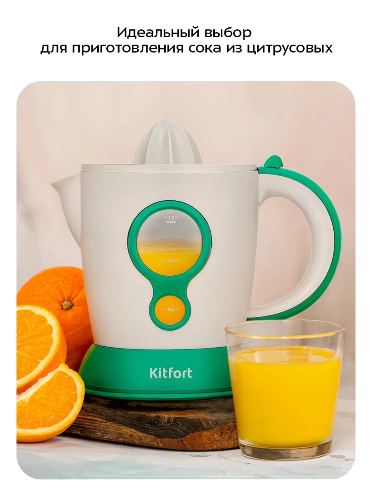 Соковыжималка для цитрусовых Kitfort КТ-1167 — это идеальное решение для любителей свежевыжатого сока. Эта кухонная техника предназначена для отжима сока из лимонов, грейпфрутов, апельсинов и других цитрусовых плодов. Главное преимущество данной соковыжималки заключается в том, что вам не нужно очищать фрукты от кожуры: достаточно разрезать их пополам и поместить на конус выжималки. Соковыжималка оснащена двумя конусами: малым для небольших плодов, таких как лимоны или лаймы, и большим — для крупных фруктов вроде апельсинов и грейпфрутов. Конусы вращаются в двух направлениях, что позволяет максимально эффективно извлечь сок из каждого плода. Подача сока осуществляется в контейнер с мерной шкалой объёмом 1,2 литра. Благодаря двойному фильтру кусочки мякоти и косточки не попадают в ваш напиток. Все съемные части устройства легко моются под проточной водой или в посудомоечной машине. Прорезиненные ножки обеспечивают устойчивость прибора на столе во время работы. Эта соковыжималка мощностью 30 Вт работает при напряжении ~220–240 В и частоте 50/60 Гц. Скорость вращения конуса составляет 60–90 об/минуту, что обеспечивает быстрое приготовление свежего напитка каждое утро. Kitfort КТ-1167 — это надежная техника из сталь для вашей кухни! Она поможет вам ежедневно наслаждаться полезным витаминным коктейлем без лишних усилий.