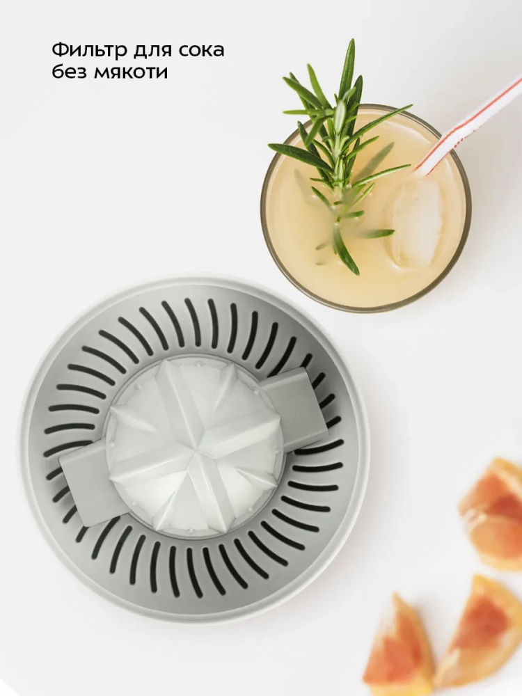 Крышка, конусы, фильтр, контейнер для сока, а также шпиндель легко снимаются и моются. Прорезиненные ножки не дают прибору скользить по столу во время отжима сока.