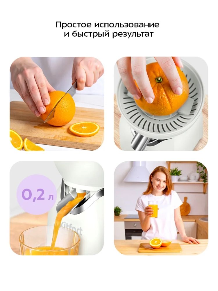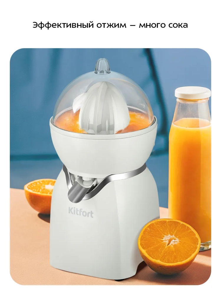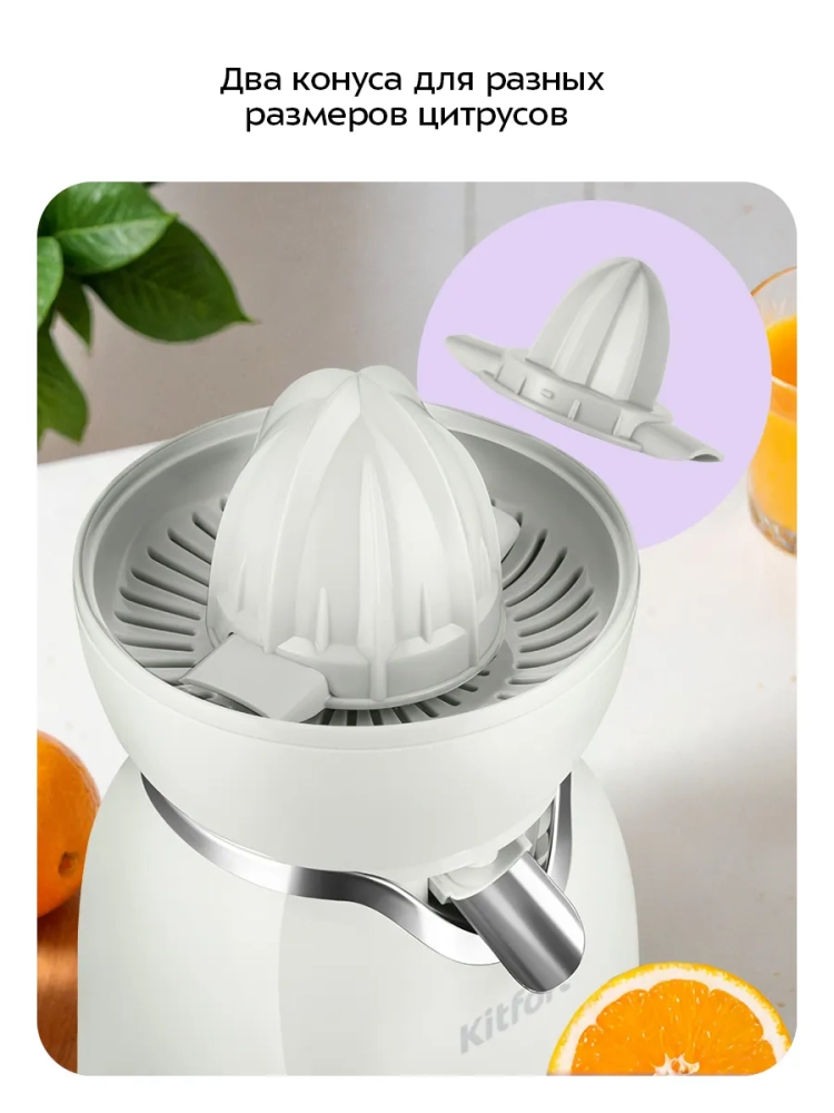 Соковыжималка для цитрусовых Kitfort КТ-1178 предназначена для отжима сока из плодов цитрусовых: лимонов, грейпфрутов, апельсинов и др. Главное преимущество соковыжималки для цитрусовых — для нее не требуется очищать цитрусы от кожуры: их лишь необходимо предварительно разрезать пополам поперек долек.