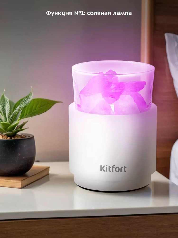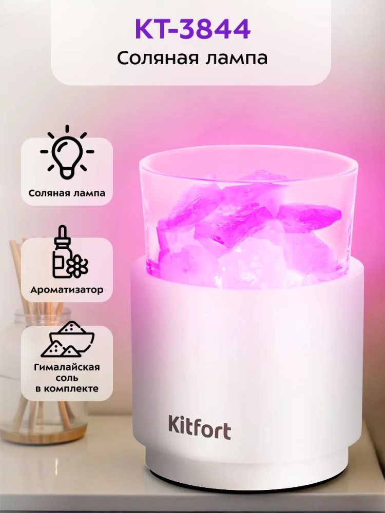 Соляная лампа-ароматизатор Kitfort KT-3844 — это светильник, основой которого являются кристаллы каменной соли.