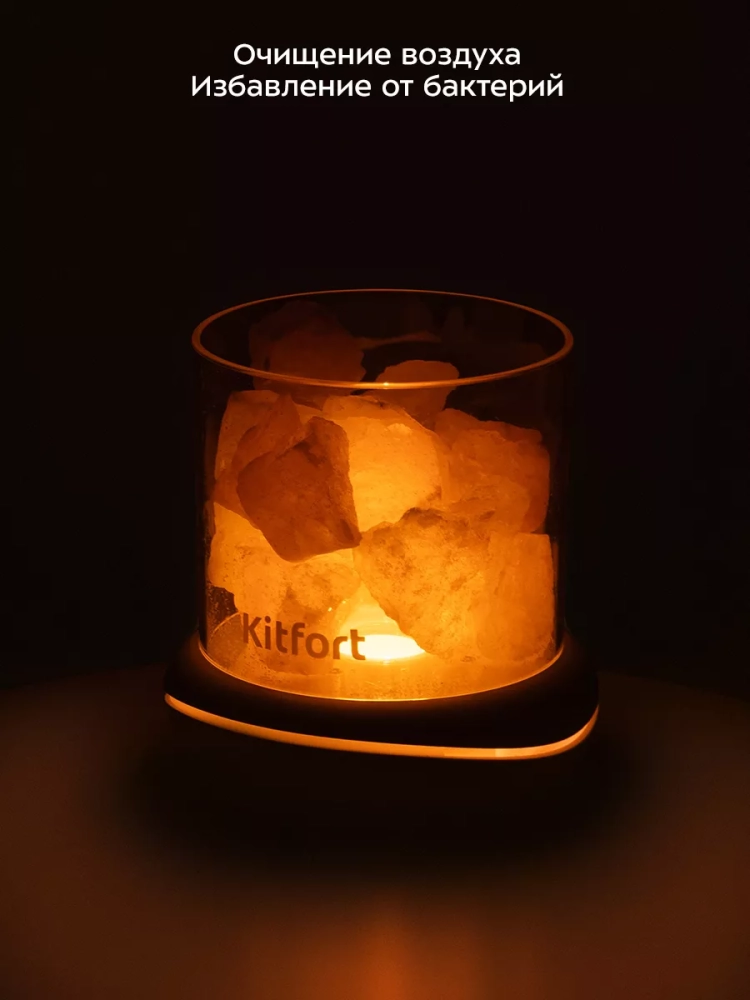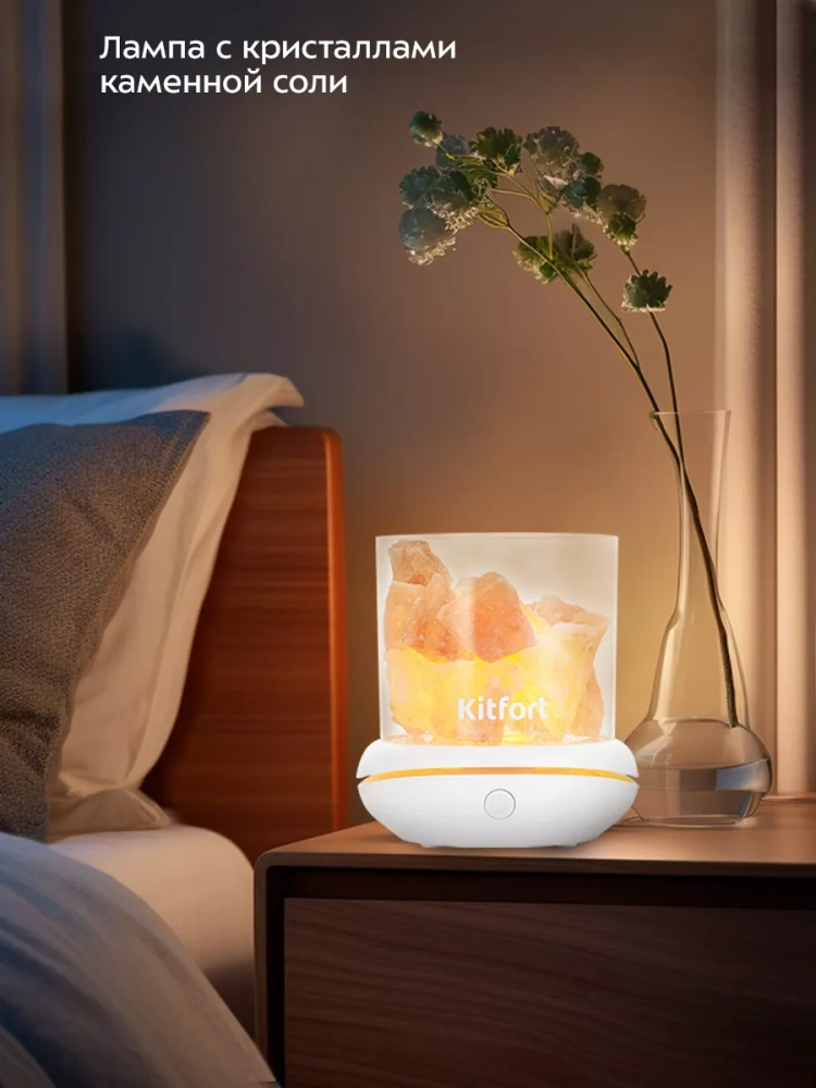 Соляная лампа-ароматизатор Kitfort KT-3846 — это светильник, основой которого являются кристаллы каменной соли.