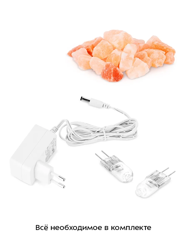 В основании лампы расположена галогенная лампочка, имеющая 5 уровней яркости. Лампочка нагревает кристаллы соли, а соль при этом оказывает благоприятное действие на микроклимат в помещении.