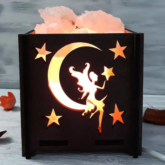 Светильник «Фея» — это эстетическая часть интерьера и осветительный прибор одновременно. Лампа из соли является дополнительным источником света и даёт мягкое успокаивающее свечение. Идеально подходит в качестве ночника.