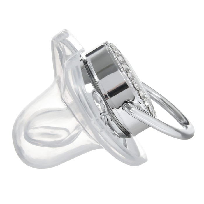 Роскошная пустышка со стразами Соска со стразами ортодонтической формы скошенная. Современный и модный дизайн пустышки со стразами не оставит равнодушным никого из взрослых и детей. Очень стильная и модная детская соска повторяет форму соска материнской груди во время кормления. Даже детки с зубами могут пользоваться ей, ведь она очень плотная.