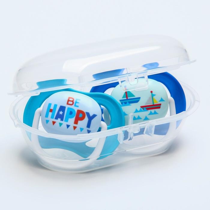 Соска - пустышка ultra air Lime, «Be happy / Кораблик», 6-18 мес., 2 шт., цвет голубой, синий