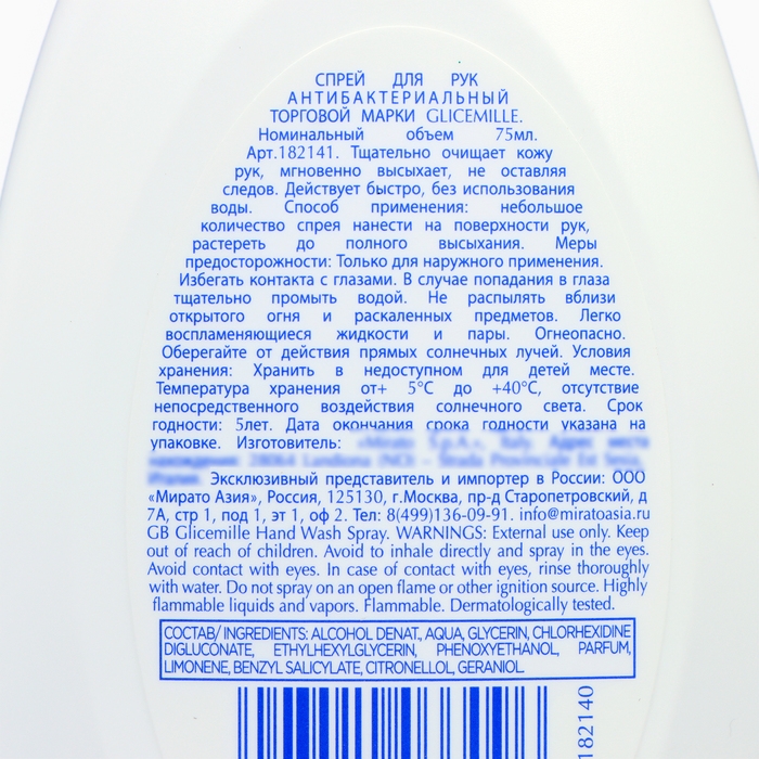 Спрей для рук антибактериальный GLICEMILLE, 75 мл