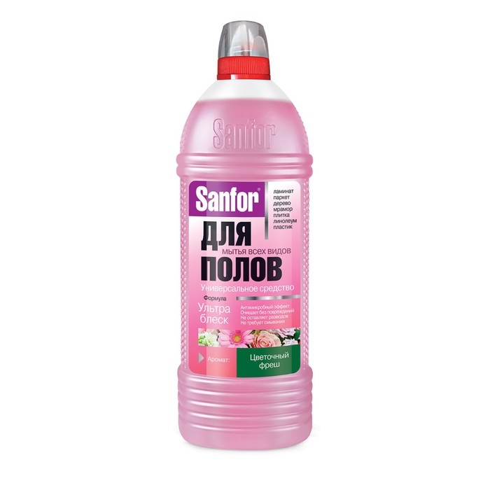 Средство для мытья полов Sanfor Ультра блеск, "Цветочный фреш", 1000 мл