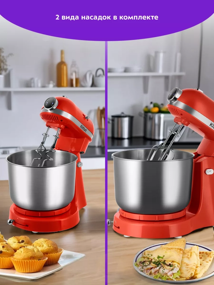 Стационарный миксер Kitfort КТ-3469 поможет взбить яичные белки, приготовить кремы, домашние соусы, а также жидкое тесто, например, для шарлотки, или густое — для сдобной выпечки. Миксер подходит для замешивания легких и плотных смесей, но не для замешивания тугого теста, например, для пельменей.