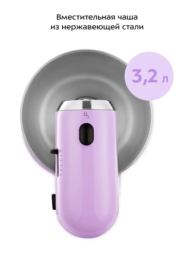 Стационарный миксер Kitfort КТ-4424 поможет взбить яичные белки, приготовить кремы, домашние соусы, а также жидкое тесто, например для шарлотки, или густое — для сдобной выпечки. Миксер подходит для замешивания легких и плотных смесей, но не для замешивания тугого теста, например, для пельменей. Во время работы насадки вращаются вокруг своей оси. При использовании миксера с венчиками для взбивания чаша будет вращаться благодаря специальной пластиковой вставке на одном из венчиков. При использовании крюков для замешивания чашу можно вращать вручную при необходимости, чтобы ингредиенты смешивались без комочков. Подставку с чашей можно перемещать для равномерного смешивания продуктов в чаше. Пользоваться устройством очень просто. Вам достаточно только установить насадки, положить ингредиенты в чашу и включить прибор домашний кондитер. Это освободит вас от участия в процессе взбивания и перемешивания, а также позволит добавлять ингредиенты в чашу прямо в процессе смешивания. У миксера 5 скоростей работы, благодаря чему вы сможете выбрать подходящую скорость для взбивания или смешивания ингредиентов. В комплекте с устройством поставляются два вида насадок: венчики подходят для взбивания ингредиентов и замешивания жидкого теста для блинов, вафель или бисквитов, а крюки — для замешивания более плотного теста, например песочного или дрожжевого. Для снятия насадок достаточно одного нажатия на кнопку, поэтому их легко менять и мыть. Напряжение: ~220–240 В, 50/60 Гц. Мощность: 300 Вт. Класс защиты от поражения электрическим током: II. Количество скоростей: 5. Емкость чаши: 3,2 л. Материал чаши: нержавеющая сталь. Уровень шума: ≤85 дБ. Длина шнура: 1,1 м. Размер устройства: 300 × 207 × 270 мм.