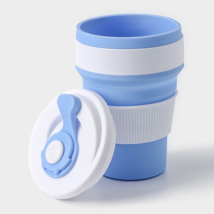 Стакан складной с крышкой Доляна «С собой», 350 мл, 8,5×14 см, цвет голубой