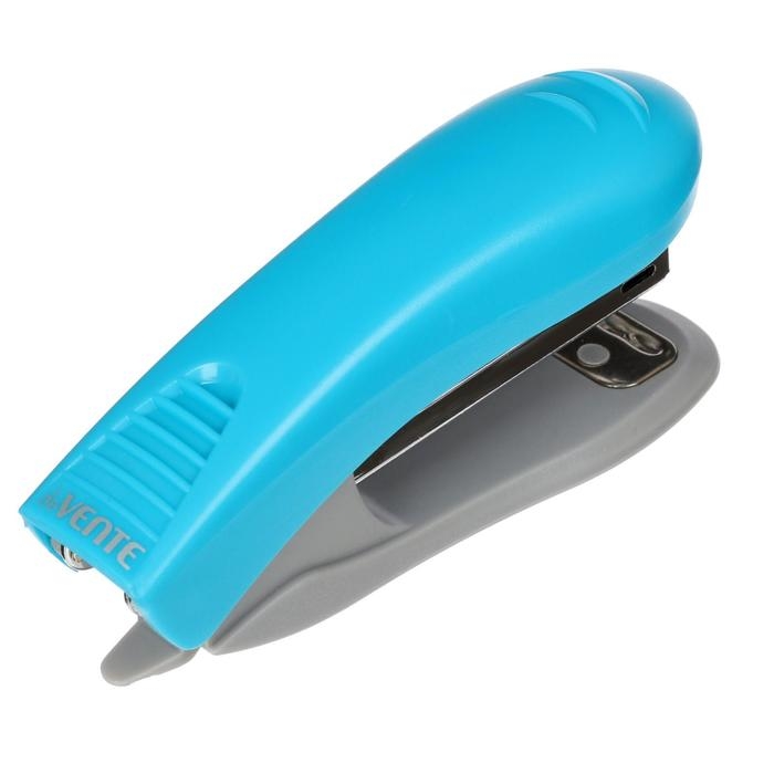 Степлер deVENTE. Neon № 10 (мощность 10 листовистов, глубина скрепления 43 мм) пластиковый, со встроенным антистеплером, в картонной коробке, неоновый голубой
