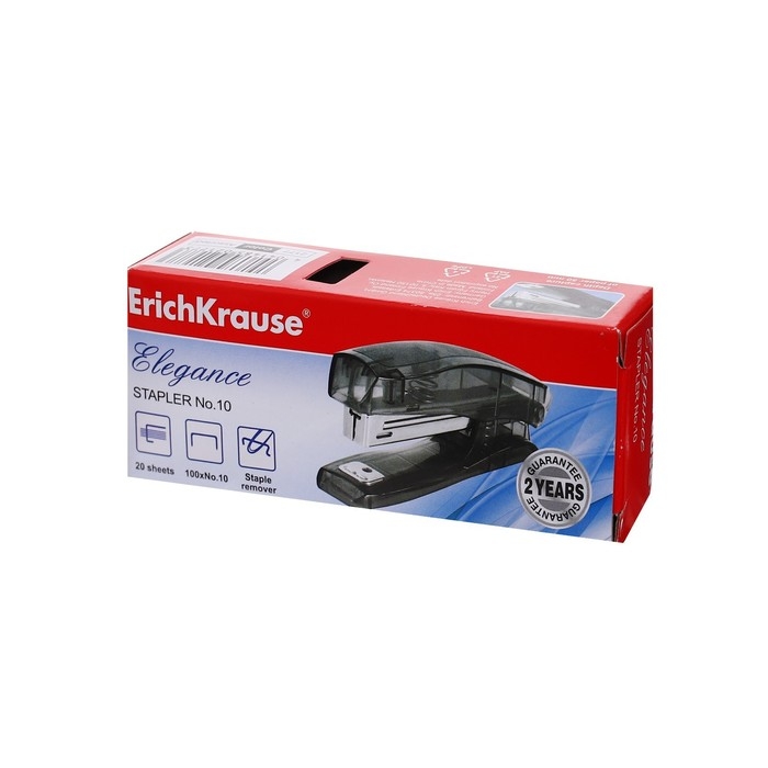 Степлер ErichKrause Elegance № 10, до 20 листов, встроенный антистеплер, чёрный