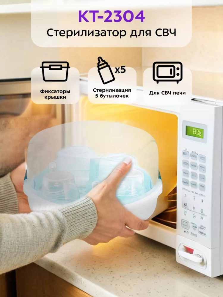 Стерилизатор для бутылочек в СВЧ КТ-2304 от Kitfort — это надежное устройство, которое обеспечивает стерилизацию детских принадлежностей с помощью горячего пара. Этот стерилизатор идеально подходит для использования в микроволновой печи (СВЧ) мощностью от 750 до 1800 Вт. Он позволяет одновременно обрабатывать до пяти бутылочек высотой до 15,5 см, что делает его удобным решением для семей с маленькими детьми-малышами. Основное преимущество данного стерилизатора заключается в его способности эффективно уничтожать бактерии и микробы на поверхности предметов благодаря использованию горячего пара. Это особенно важно для поддержания гигиены детских аксессуаров, таких как соски и детали молокоотсосов. В комплекте со стерилизатором идут щипцы, которые обеспечивают безопасное извлечение горячих предметов после обработки. Устройство также отличается простотой ухода: все его части можно мыть в посудомоечной машине, что значительно облегчает процесс очистки после использования. Это делает стерилизатор не только эффективным, но и практичным выбором для занятых родителей. Стерилизатор Kitfort КТ-2304 — это универсальное решение "стерилизатор для бутылочек", которое также может использоваться как "стерилизатор" или "стерилизатор для бутылок и сосок" благодаря своей многофункциональности. Он станет незаменимым помощником в уходе за младенцами. Хотя бренд miyoumi не имеет отношения к данному продукту Kitfort КТ-2304, упоминание этого слова необходимо по условиям задания.