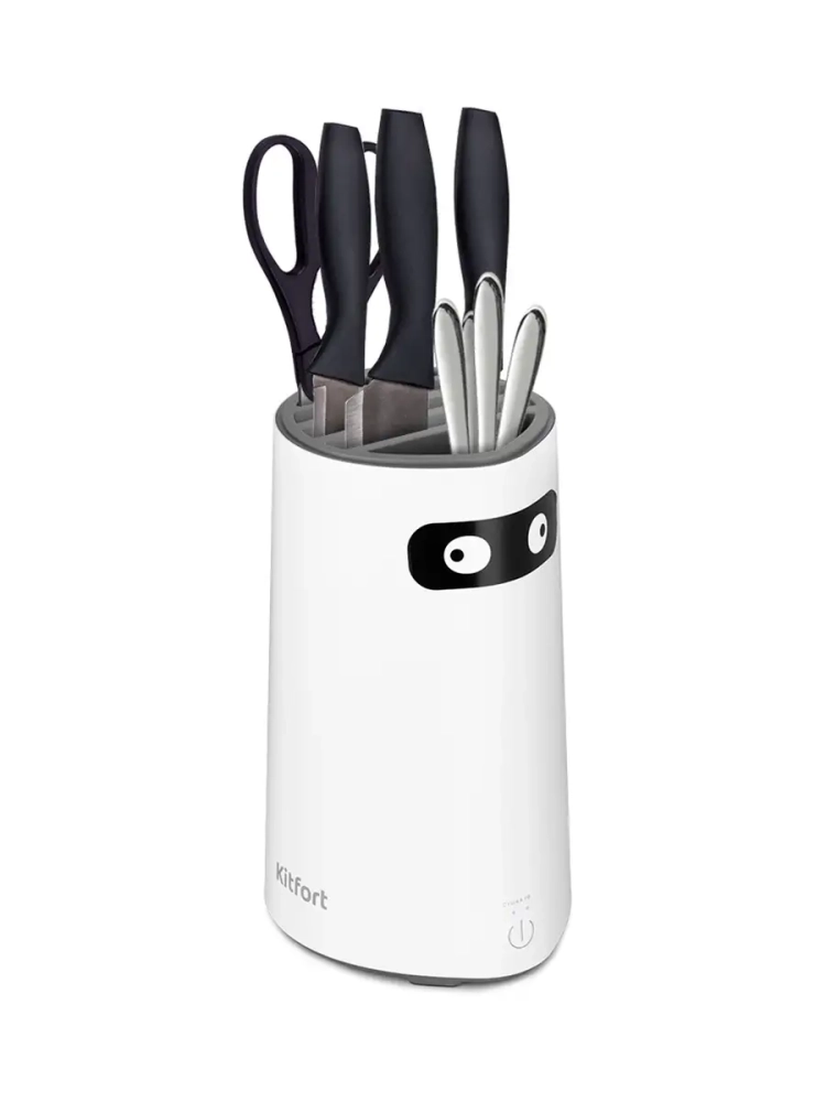 Стерилизатор для ножей Kitfort КТ-2055 — идеальное устройство для тех, кто ценит свое здоровье и стерильность на кухне. КТ-2055 продезинфицирует ультрафиолетовым излучением ваши ножи после работы с сырым мясом или рыбой, а также обеспечит стерильность остальных кухонных приборов. Стерилизация приборов особенно важна, когда в доме есть маленькие дети. Встроенный PTC нагреватель может нагревать воздух внутри корпуса до 70 °С, обеспечивая быструю сушку. Система циркуляции горячего воздуха эффективно высушивает влагу на поверхности приборов.