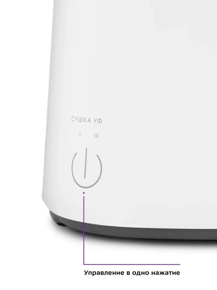 У прибора простое управление. Сушка и стерилизация включаются одновременно единственной кнопкой на корпусе. Весь процесс займет 40 минут, после чего устройство автоматически выключится.