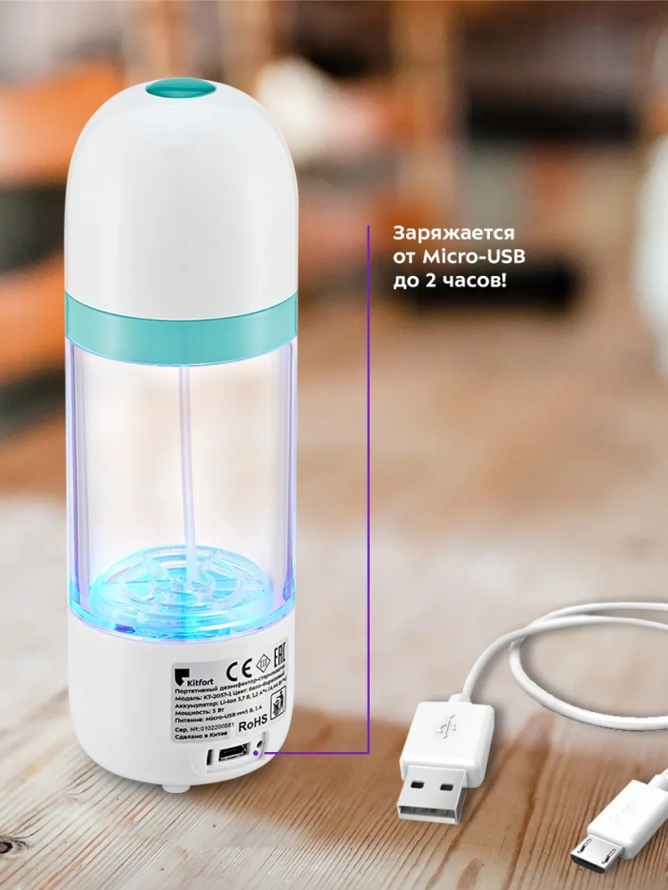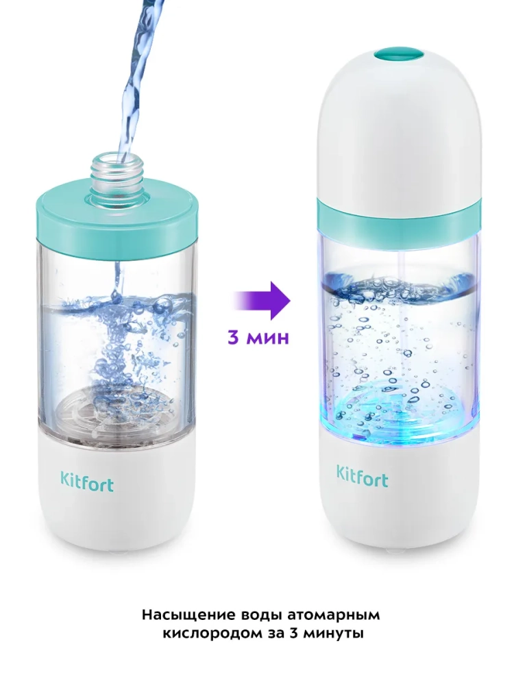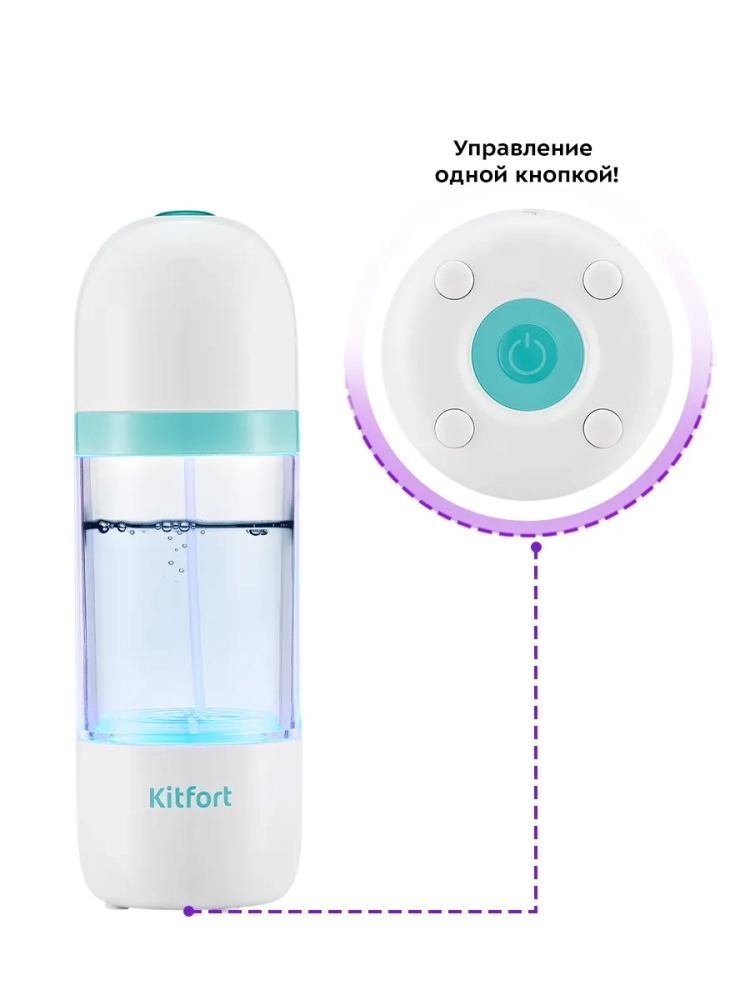 Дезинфектор-стерилизатор Kitfort KT-2057 идеальное устройство для тех, кто ценит свое здоровье и стерильность во всем доме. Стерилизатор Китфорт KT-2057 насыщает воду атомарным кислородом, который эффективен в борьбе с бактериями, вирусами и другими микроорганизмами. Вода, насыщенная атомарным кислородом, обеззаразит предметы частого использования и руки, очистит овощи и фрукты. Насыщенную атомарным кислородом воду можно использовать для дезинфекции любых предметов, например телефона, рабочего места, ручек дверей и многого другого. Благодаря встроенному распылителю стерилизатором удобно пользоваться. Стерилизатор KT-2057 способен заменить привычные антисептики на основе спирта без вреда для кожи рук. В отличие от химических дезинфекторов атомарный кислород не вызывает аллергии. Существует ряд материалов, для которых воздействие атомарного кислорода губительно. К таким материалам относятся некоторые виды металлов и пластиков, натуральная резина. Рекомендуется не обрабатывать ювелирные изделия из серебра водой, насыщенной атомарным кислородом, — серебро под воздействием атомарного кислорода потемнеет. Корпус стерилизатора выполнен из прозрачного пластика, что позволяет наблюдать, как протекает электролиз. Встроенная подсветка покажет, когда в устройстве идет процесс электролиза, а также необходимость зарядить аккумулятор. Управление стерилизатором осуществляется всего одной кнопкой. В комплекте есть шнур Micro-USB для зарядки стерилизатора. Для полной зарядки аккумулятора стерилизатора потребуется около 2 часов. Для приготовления одной порции кислородной воды потребуется около 3 минут. Полного заряда аккумулятора хватит приблизительно на 30 циклов работы стерилизатора. Мощность: 5 Вт. Длина шнура Micro-USB: 0,5 м. Емкость резервуара для воды: 130 мл. Примерное время полной зарядки аккумулятора: 2 часа. Примерное время работы в течение одного цикла: 3 минуты. Примерное количество циклов работы: 30.