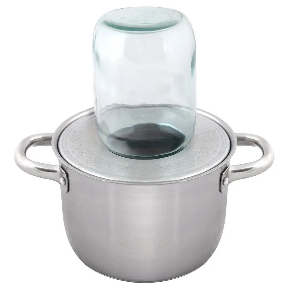 В период летних заготовок довольно часто приходится стерилизовать банки. Специальный стерилизатор поможет быстро и без усилий простерилизовать банку, без необходимости держать в руках над горячим паром. Поместите круг на кастрюлю, в отверстие вставьте банку вверх дном. Обработка горячим паром — проверенный способ избавиться от бактерий и обеспечить консервам длительный срок хранения. Изготовлено из оцинкованной стали. Диаметр: внутренний диаметр 8,5см, внешний диаметр 18см.