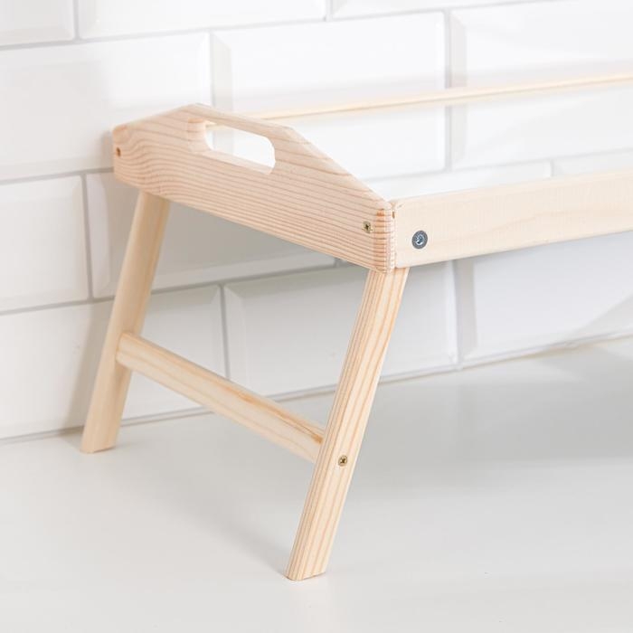 Стильный и компактный столик с небольшими бортиками по периметру позволит порадовать любимых завтраком в постель. Благодаря складным ножкам изделие легко переносить и удобно хранить.