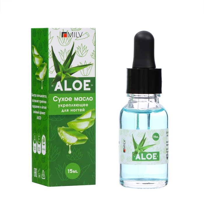 Сухое укрепляющее масло для ногтей MILV алоэ, 15 мл