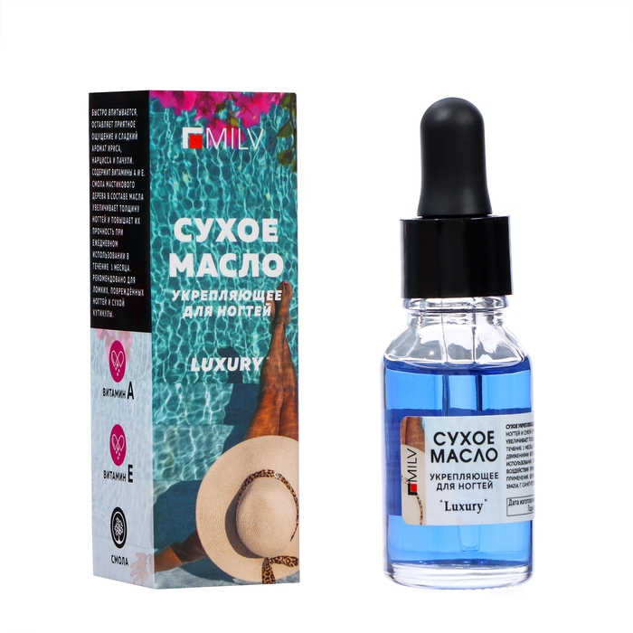 Сухое укрепляющее масло для ногтей MILV LUXURY, 15 мл