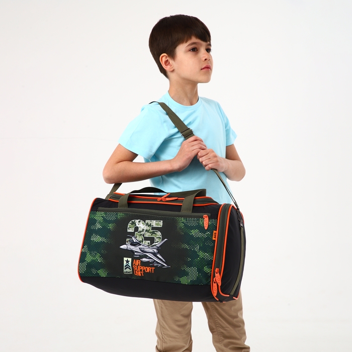 Сумка для фитнеса Самолёт на молнии, отдел для обуви, наружный карман, цвет чёрный/хаки