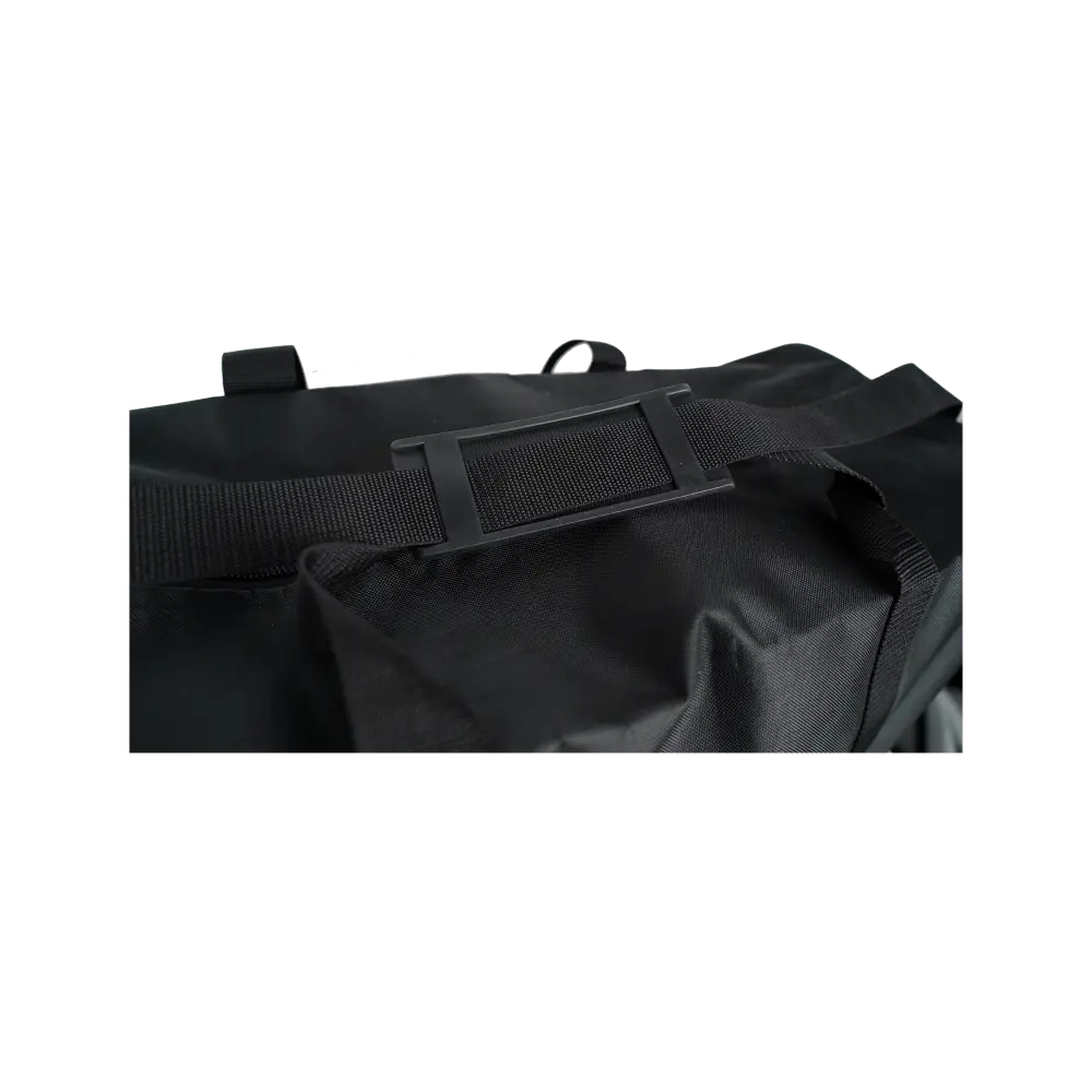 Сумка выполнена из ткани Оксфорд и имеет специальную водоотталкивающую пропитку, которая не пропускает воду и грязь, а небольшой размер (60х30х25 см) позволяет использовать её как ручную кладь для самолета.