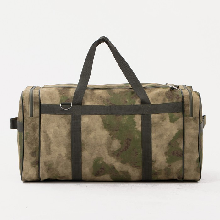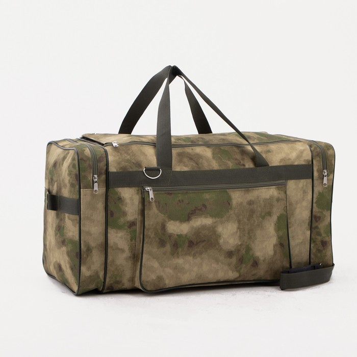 Сумка дорожная на молнии, 3 наружных кармана, длинный ремень, цвет камуфляж/хаки