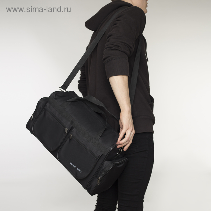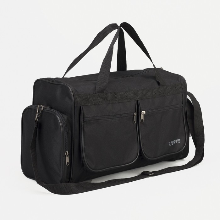 Сумка дорожная на молнии, 4 наружных кармана, длинный ремень, цвет чёрный