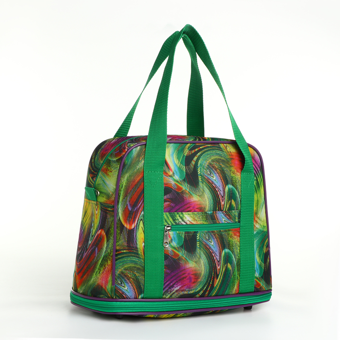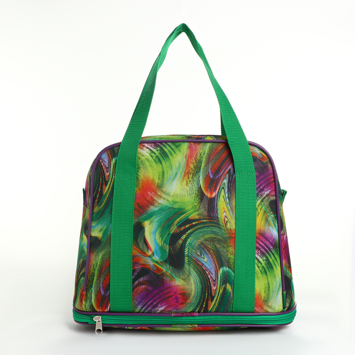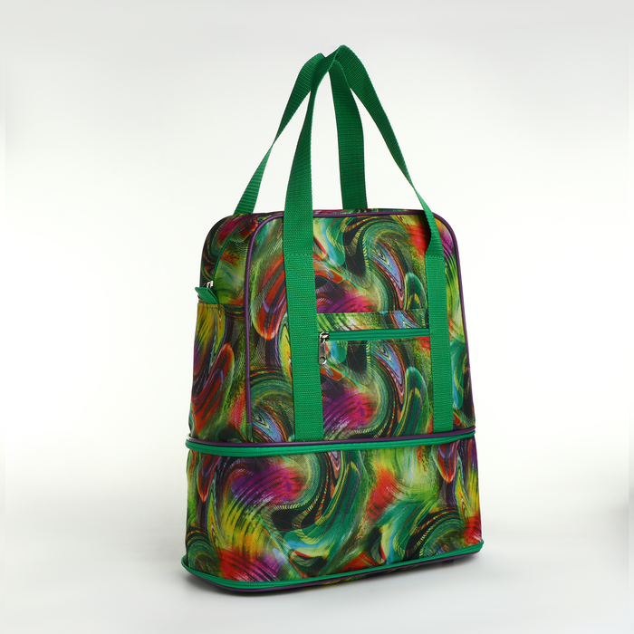 Сумка хозяйственная на молнии, с увеличением, наружный карман, цвет зелёный/разноцветный