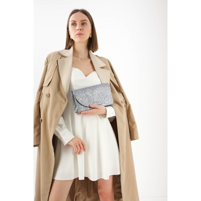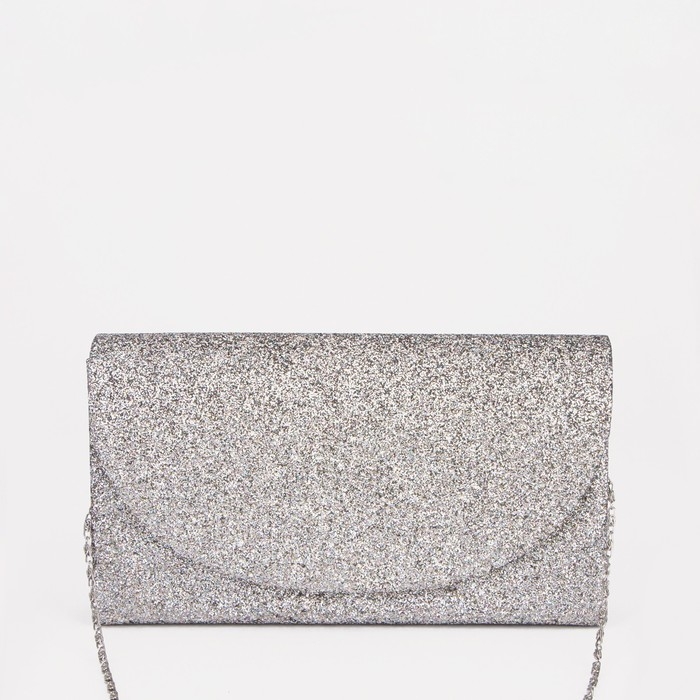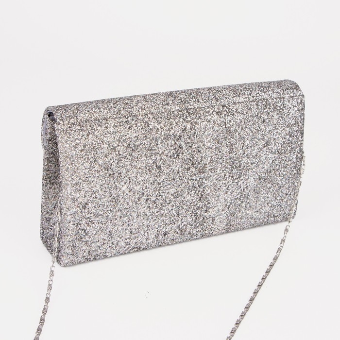 Сумка-клатч на клапане, длинная цепь, цвет тёмно-серый
