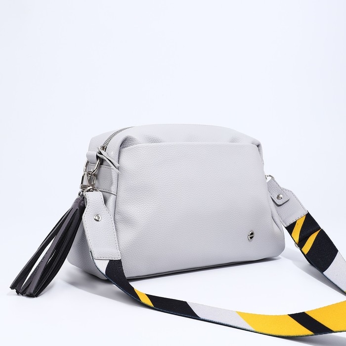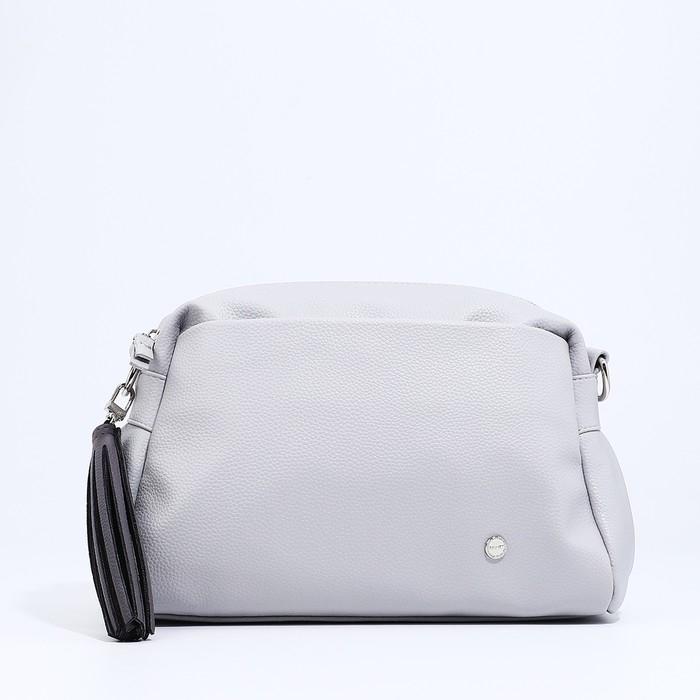 Сумка кросс-боди RICHET на молнии, наружный карман, 2 длинных ремня, цвет серый
