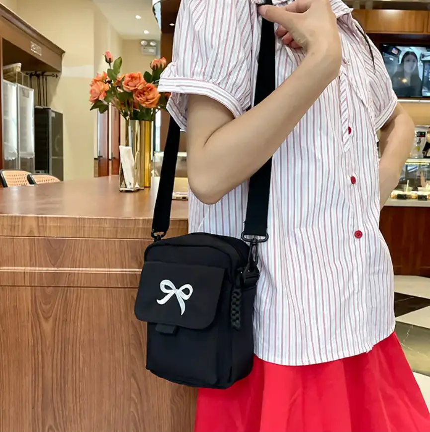 Сумка через плечо с вышивкой бантиком – идеальный аксессуар для стильной девушки! Эта маленькая кросс-боди сумка станет настоящей находкой для человека который стремится следовать актуальным трендам. Неважно, идете ли вы на прогулку с друзьями или на летний праздник, эта сумка украсит любой образ!