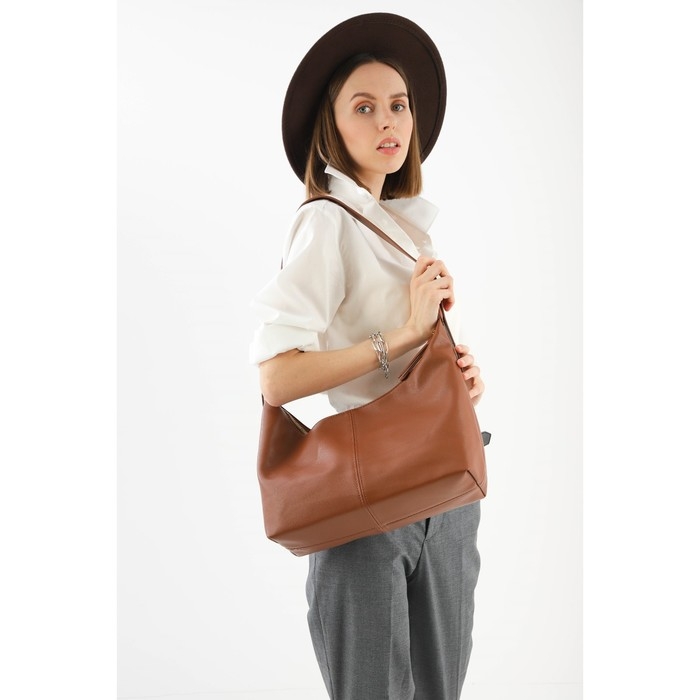 Сумка-мешок, отдел на молнии, регулируемый ремень, цвет коричневый