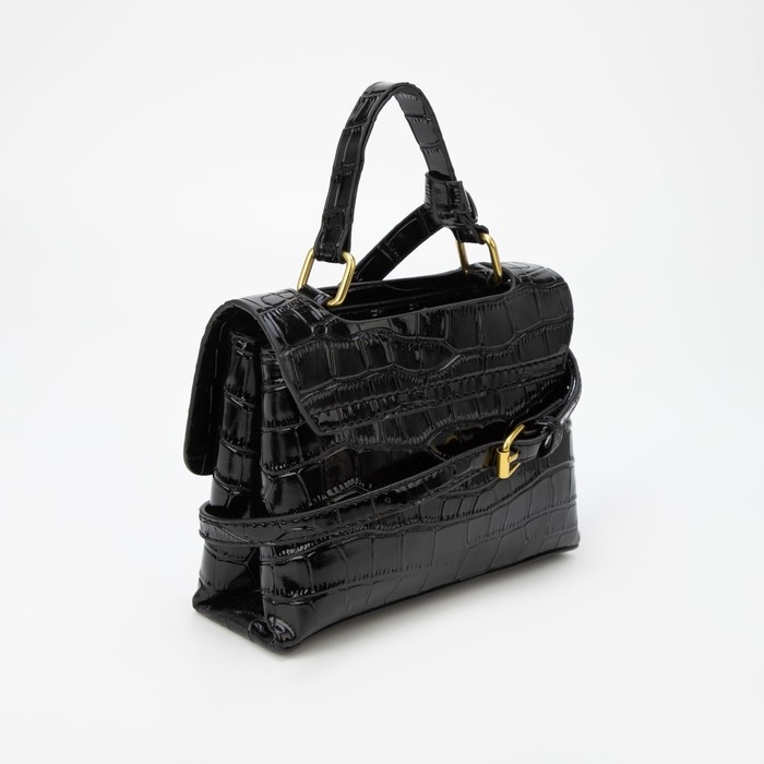 Сумка-мессенджер на клапане, длинный ремень, цвет чёрный