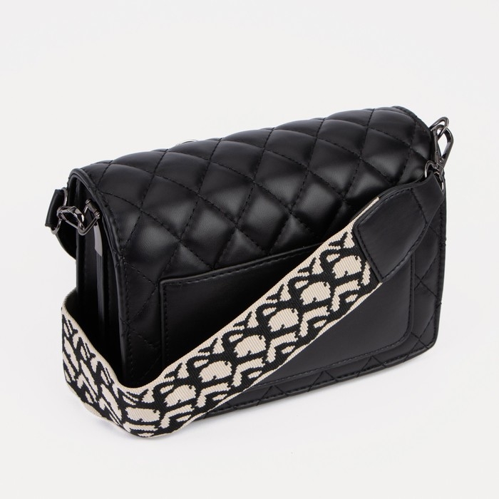 Сумка-мессенджер на клапане, длинный ремень, цвет чёрный