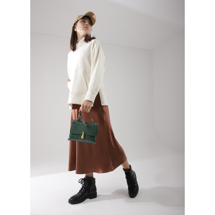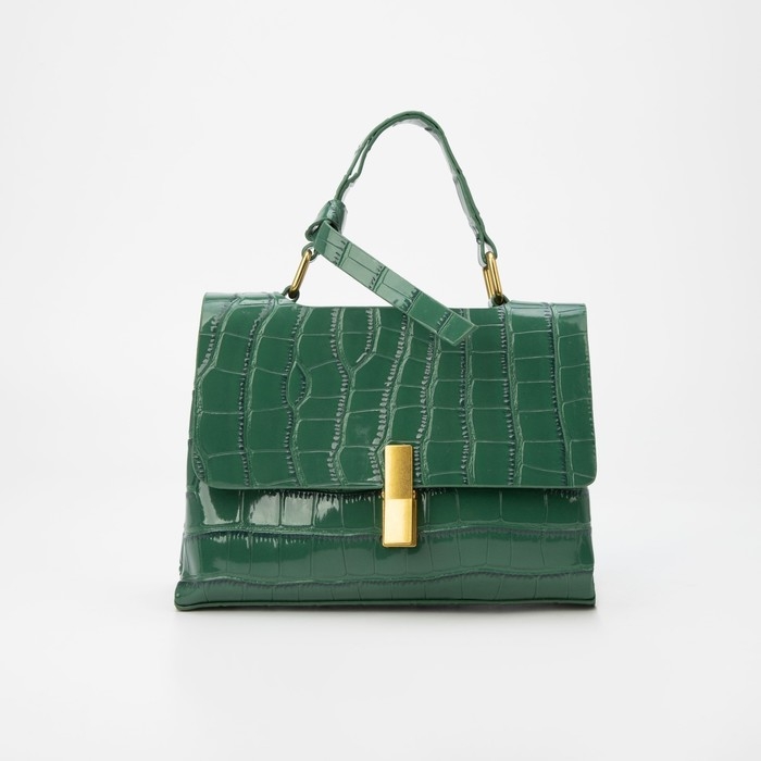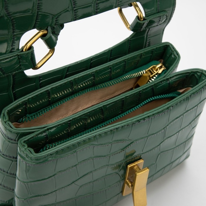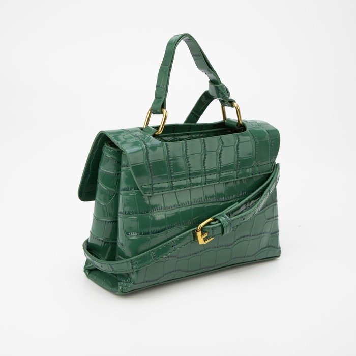 Сумка-мессенджер на клапане, длинный ремень, цвет зелёный