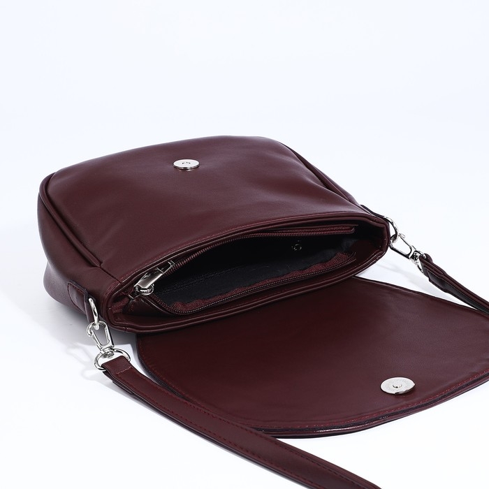 Сумка-мессенджер RICHET на магните, наружный карман, длинный ремень, цвет бордовый
