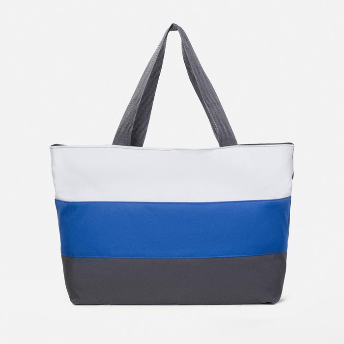 Сумка пляжная на молнии, цвет серый/синий/белый