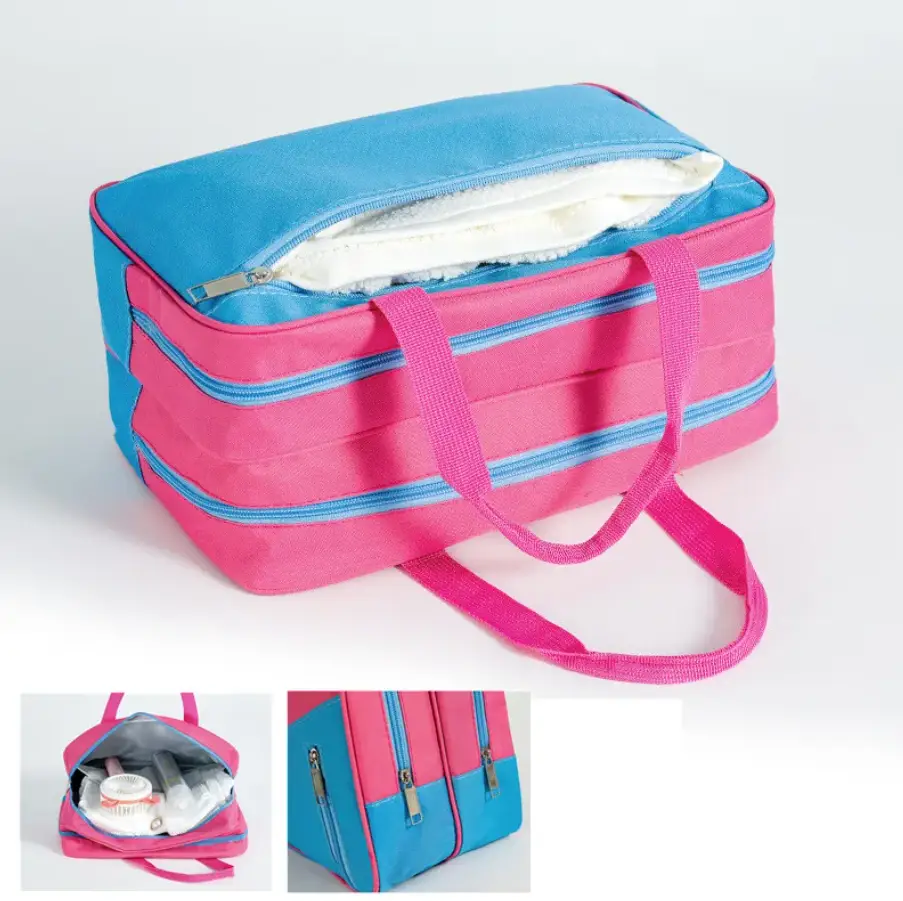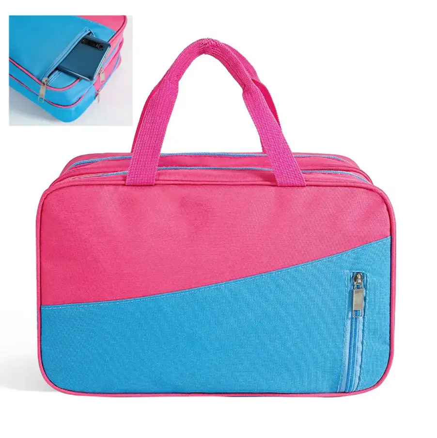 Стильная, красивая и практичная дорожная сумка на молнии изготовлена из высококачественного водоотталкивающего материала. Внутри находятся два больших отделения: одно с прочным прозрачным полиэтиленовым подкладом для влажных вещей или сменной обуви, а другое с обычным подкладом. Снаружи расположены два кармана на молнии: один подходит для хранения документов или косметики, а другой — для ключей, телефона и мелочей. Маленькая плечевая тканевая сумочка достаточно вместительна и удобна в использовании.