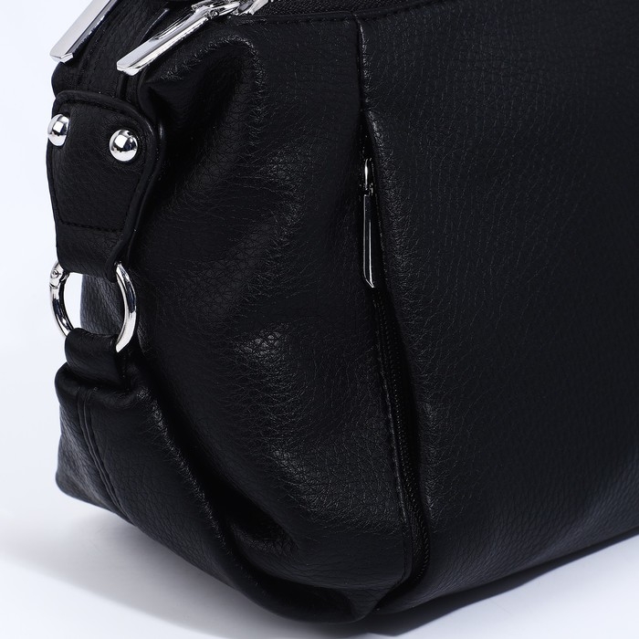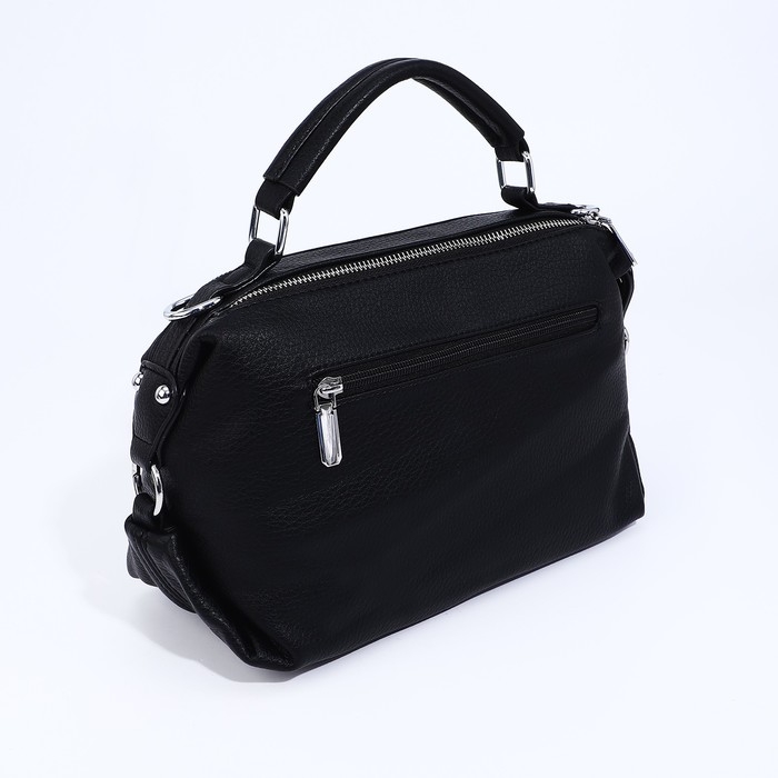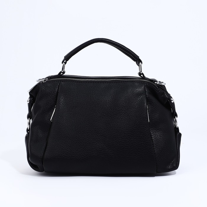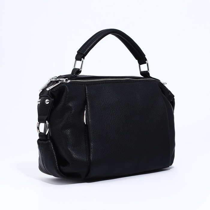 Сумка-саквояж на молнии, наружный карман, длинный ремень, цвет чёрный
