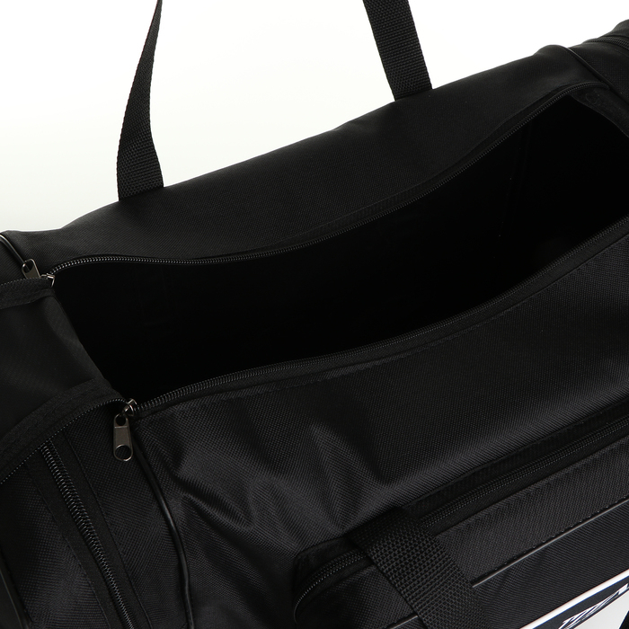 Сумка спортивная на молнии, 2 наружных кармана, длинный ремень, большой размер, цвет чёрный