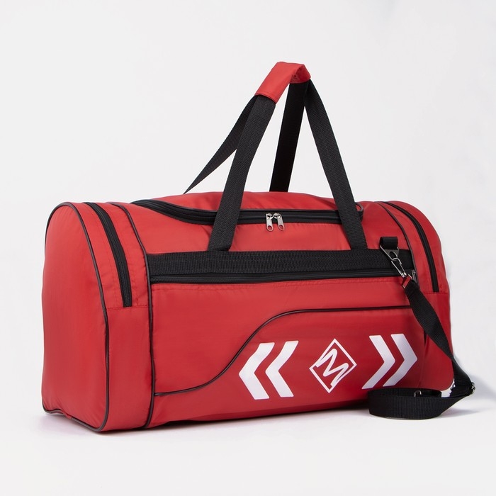 Сумка спортивная на молнии, 3 наружных кармана, длинный ремень, большой размер, цвет красный