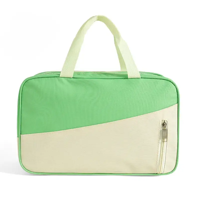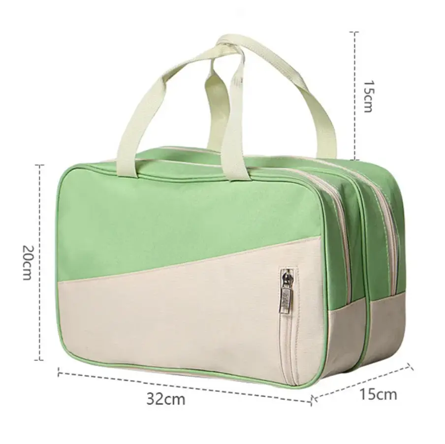 Стильная, красивая и практичная дорожная сумка на молнии изготовлена из высококачественного водоотталкивающего материала. Внутри находятся два больших отделения: одно с прочным прозрачным полиэтиленовым подкладом для влажных вещей или сменной обуви, а другое с обычным подкладом. Снаружи расположены два кармана на молнии: один подходит для хранения документов или косметики, а другой — для ключей, телефона и мелочей. Маленькая плечевая тканевая сумочка достаточно вместительна и удобна в использовании.