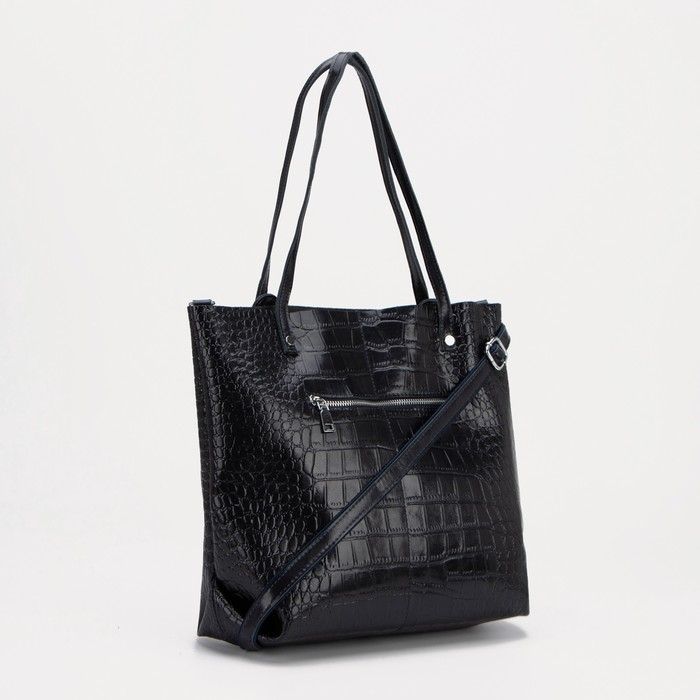 Сумка-тоут на молнии, цвет тёмно-синий