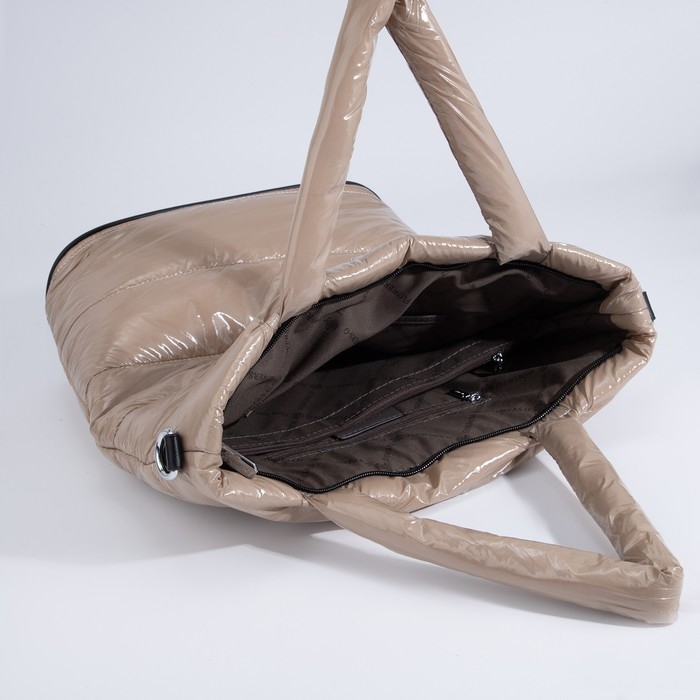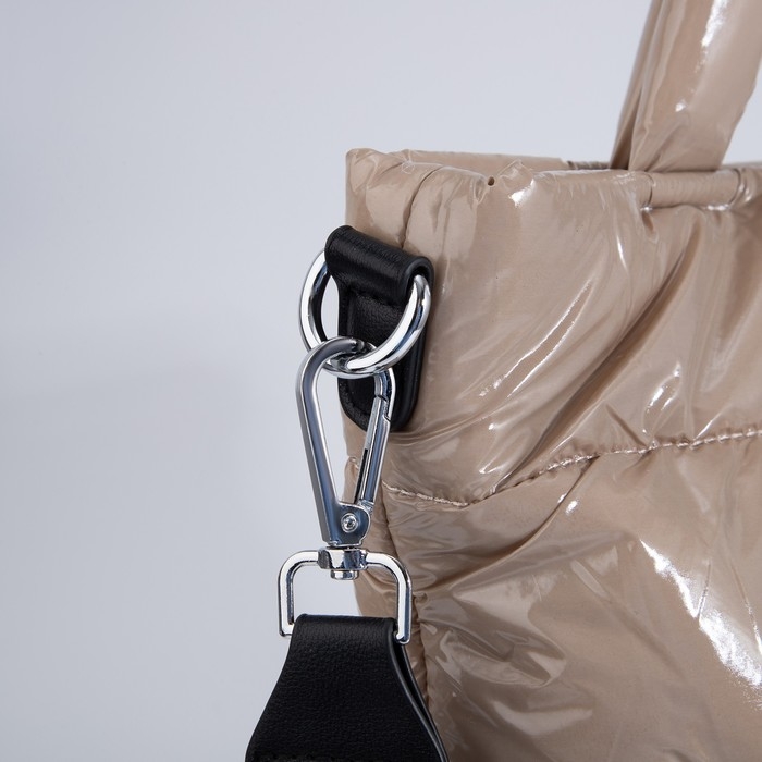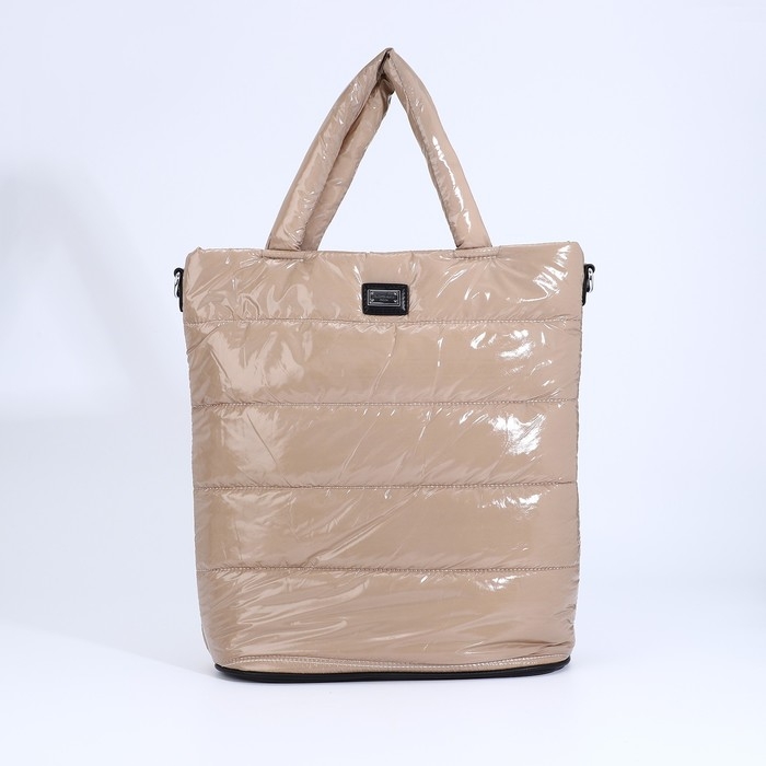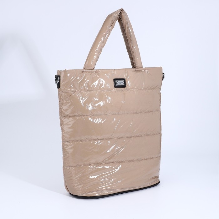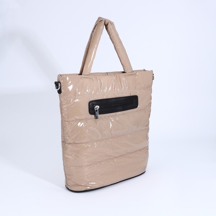 Сумка-тоут на молнии, наружный карман, длинный ремень, цвет бежевый